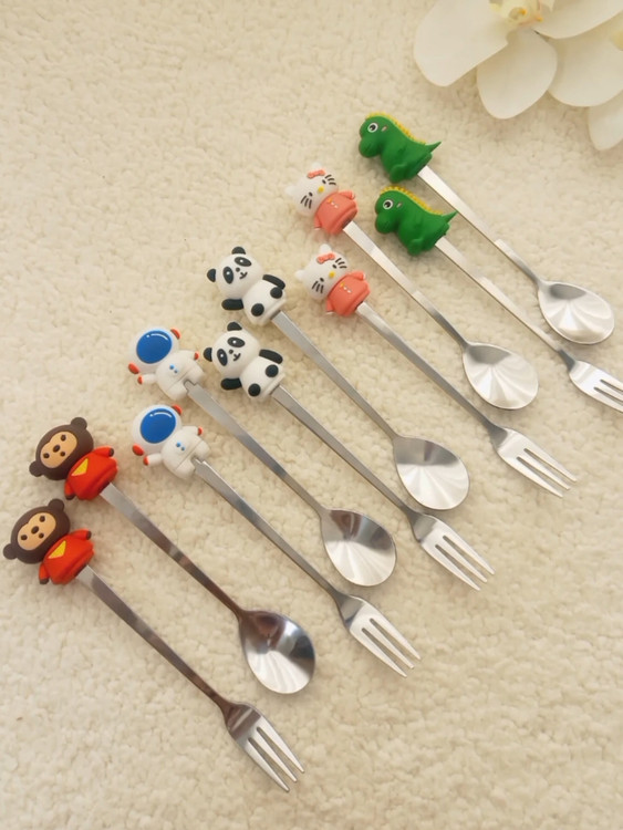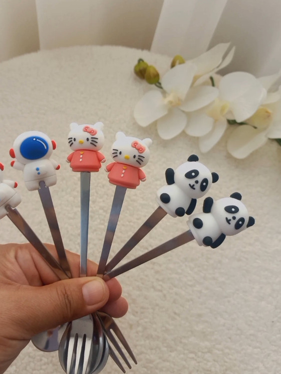 قاشق و چنگال دستهسیلیکونی یونیک، طراحی شده برای دستای کوچیک و شیرین بچهها 🍴💖